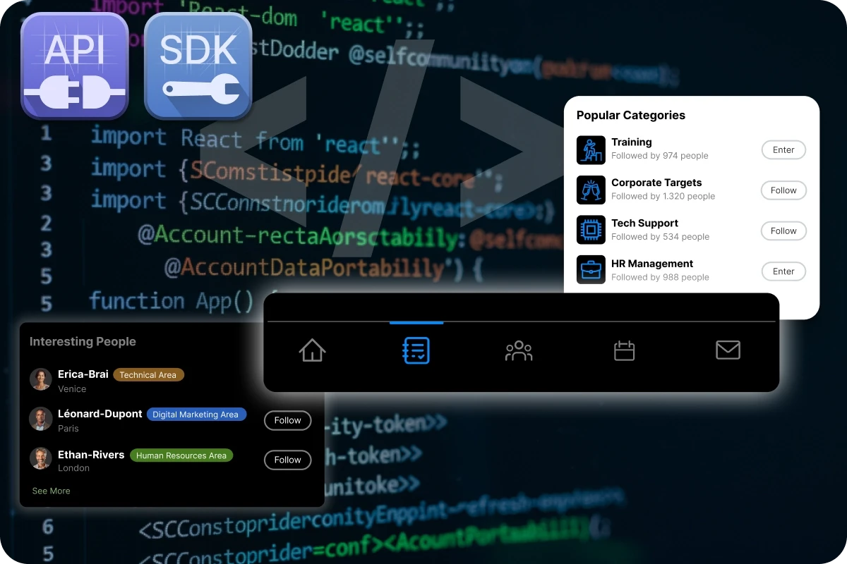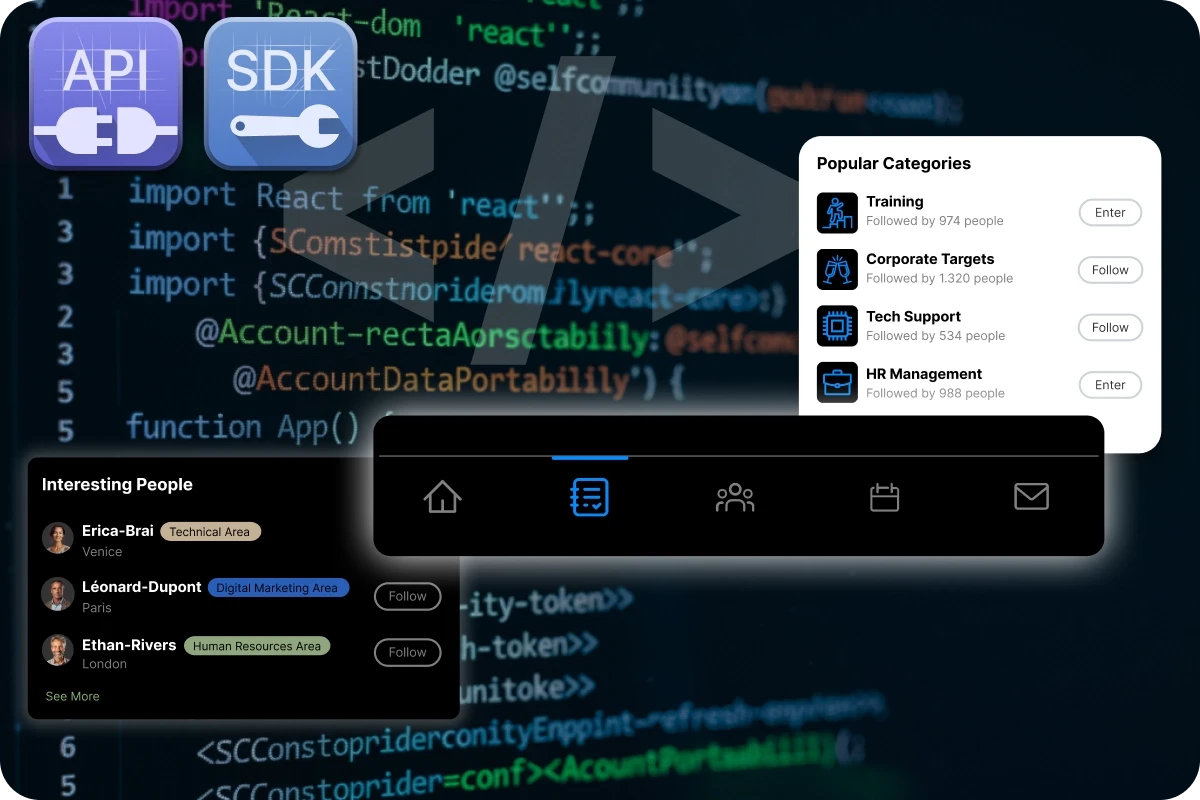 Bring the power of SelfCommunity directly into your frontend. The Community-JS SDK offers ready-to-use, fully customizable React components to integrate advanced social features into any web application without rewriting complex logic.