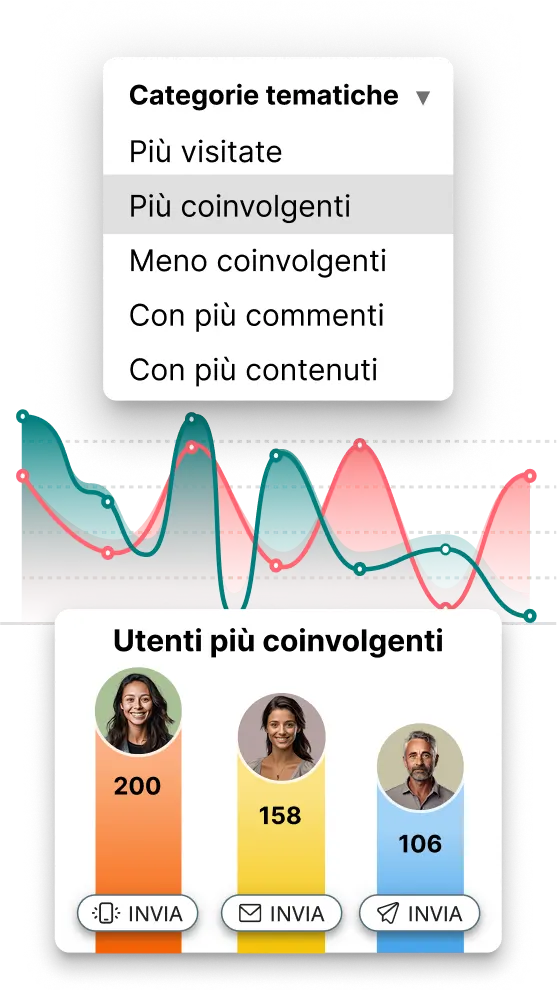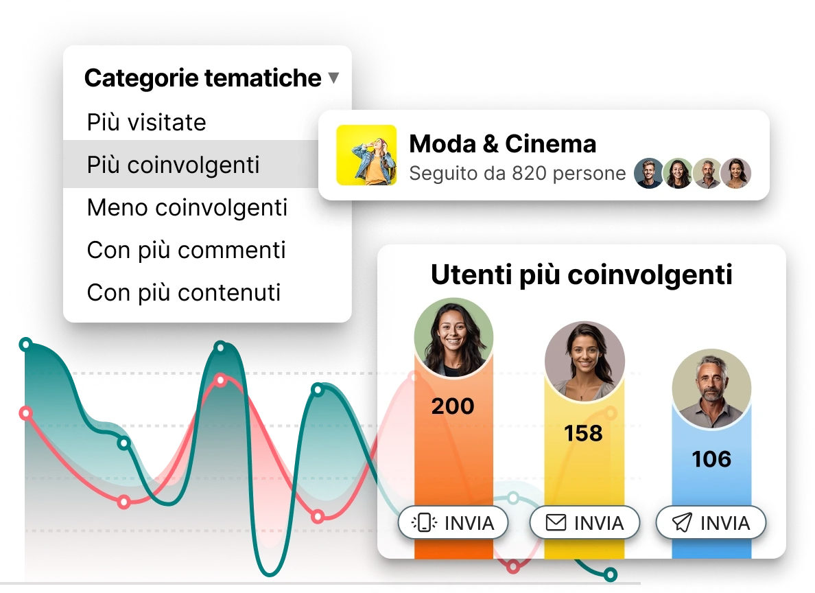 Dashboard Completo: Visualizza le metriche chiave sull'attività degli utenti, le prestazioni dei contenuti e la crescita della Community.