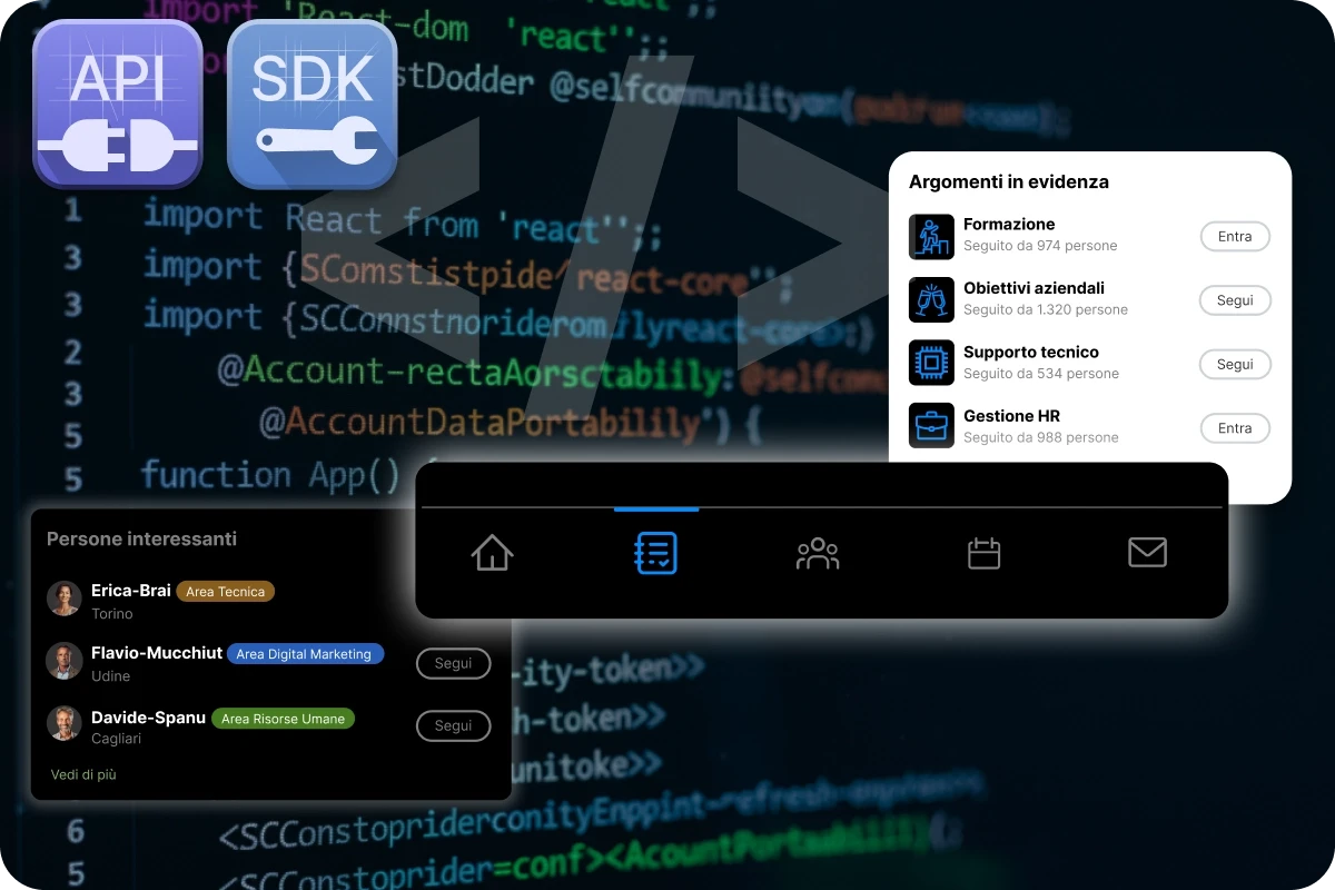 Porta la potenza di SelfCommunity direttamente nel tuo frontend. Il Community-JS SDK offre componenti React pronti all'uso, completamente personalizzabili, per integrare funzionalità social avanzate in qualsiasi applicazione web senza riscrivere logiche complesse.