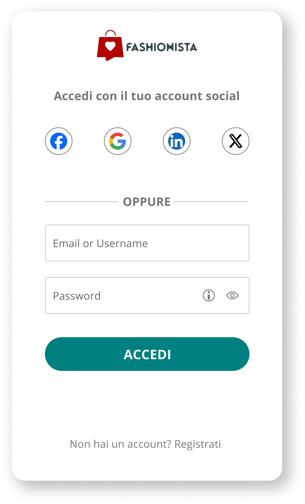 Accesso Senza Soluzioni di Continuità: Permetti agli utenti di registrarsi e accedere con un solo clic utilizzando i loro account social esistenti (Google, Facebook, Linkedin, ecc.).