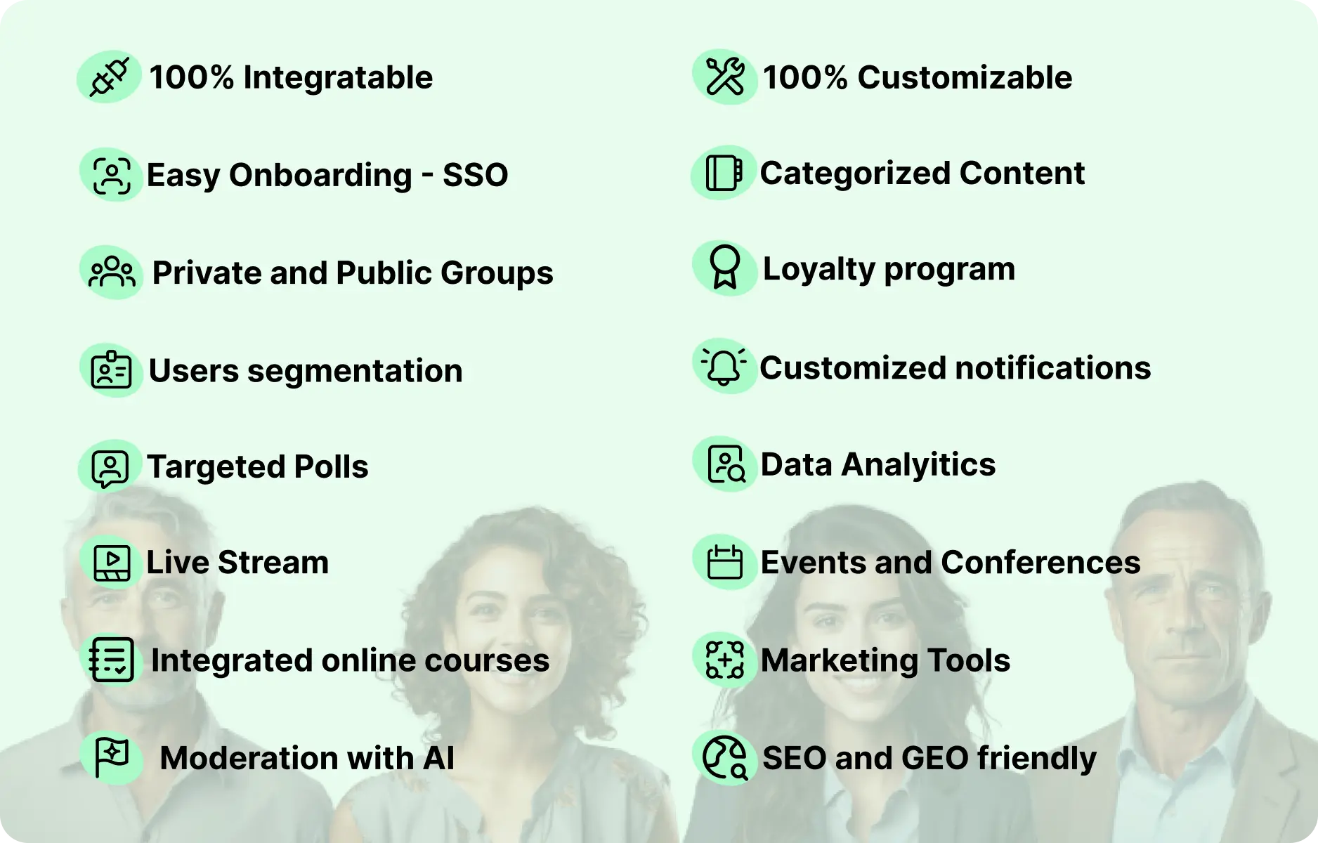 The complete Community solution for businesses demanding maximum control, scalability, and performance from people's engagement and participation.